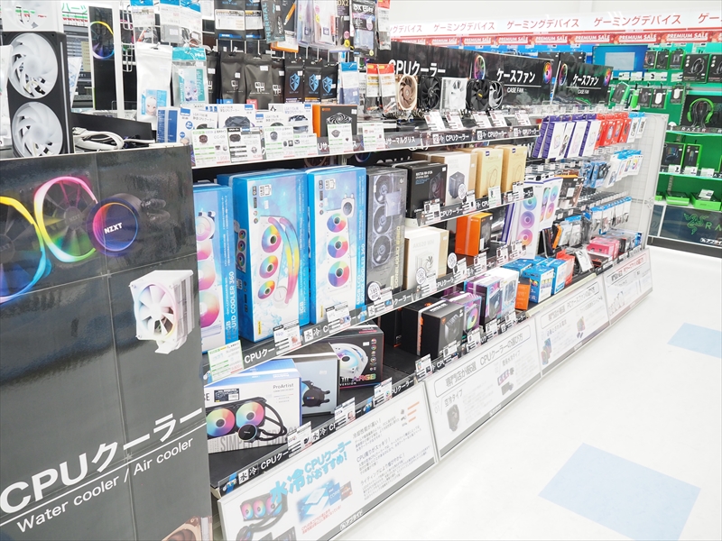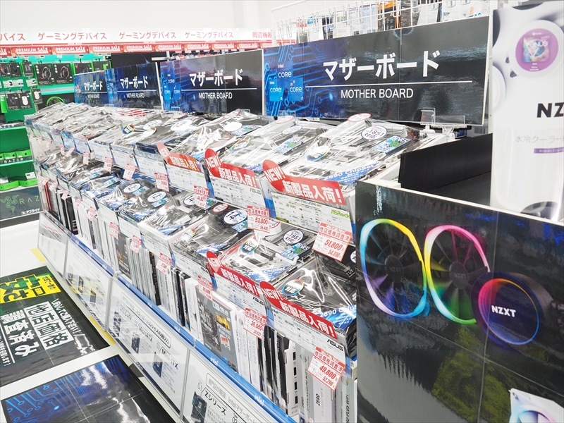 別日には店舗取材として春日井店にもお邪魔しているが、尾張旭店は春日井店より面積的には広くないが、春日井店が少しオリジナルPCの数が多めだったところ、尾張旭店はPCパーツの割合が少し多め。さらには、ゲームギアの数も少し多い印象だった。店長さんの話だと、マザーボードの数も充実しているとのことだった。