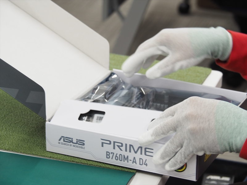 「自作パソコン組み立てイベント」では、事前に店舗2階のセミナールームにお客様のご要望どおりのパーツが各席に置かれていた。PCケースは机の横に箱に入った状態で置かれ、そのほかのパーツは机の上にあるラージサイズのバッグのようなものにまとめられていた。