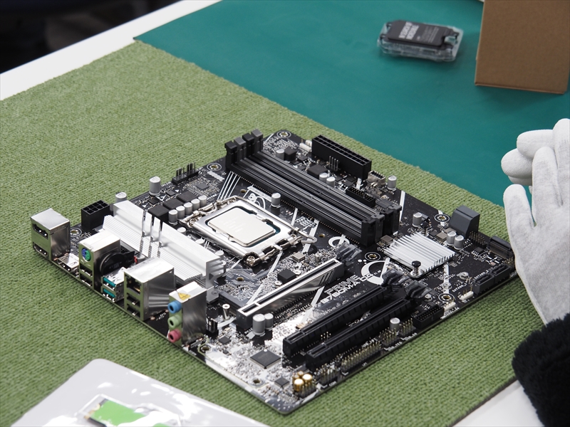 動画はサクサク進んでしまうのでは?と不安に思う人もいるかと思うが、スタッフが時間がかかりそうなシーンになると随時映像を止めて、サポートに入っていた。ちなみに20万円構成のマザーボードはASUS「B760M-A D4」で、CPUは第14世代インテル「Core i7-14700」(20コア/28スレッド、最大5.4GHz)を採用していた。