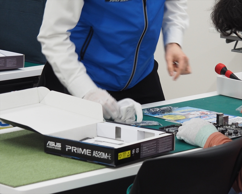 今回取材に伺った22日には、おひとりだけ10万円のセットを購入されていたが、そちらはマザーボードがASUS「A520M-E」で、CPUがAMD「Ryzen 5 5600」(6コア/12スレッド、最大4.4GHz)になっていた。
