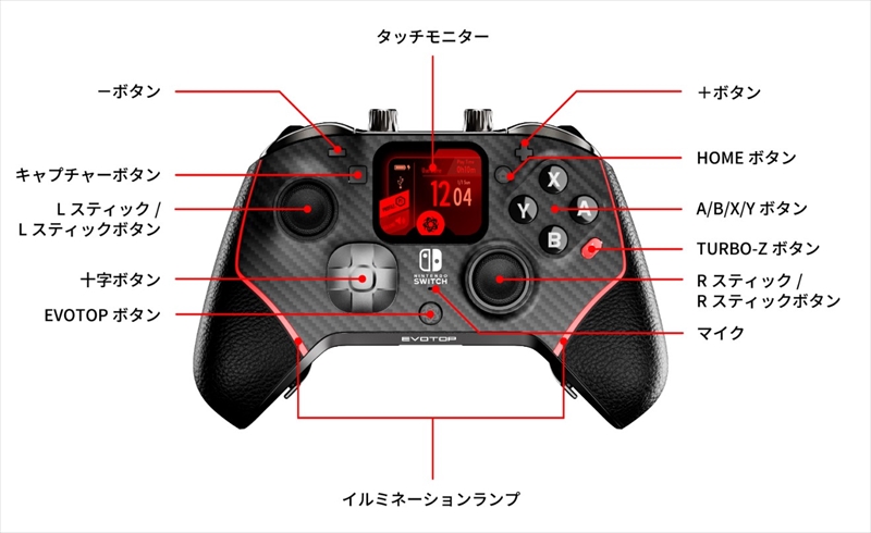 さらに、+&-ボタン、キャプチャ―ボタン、ホームボタンと、配置は異なるがNintendo Switchに備わっているボタンが上部に揃っている。