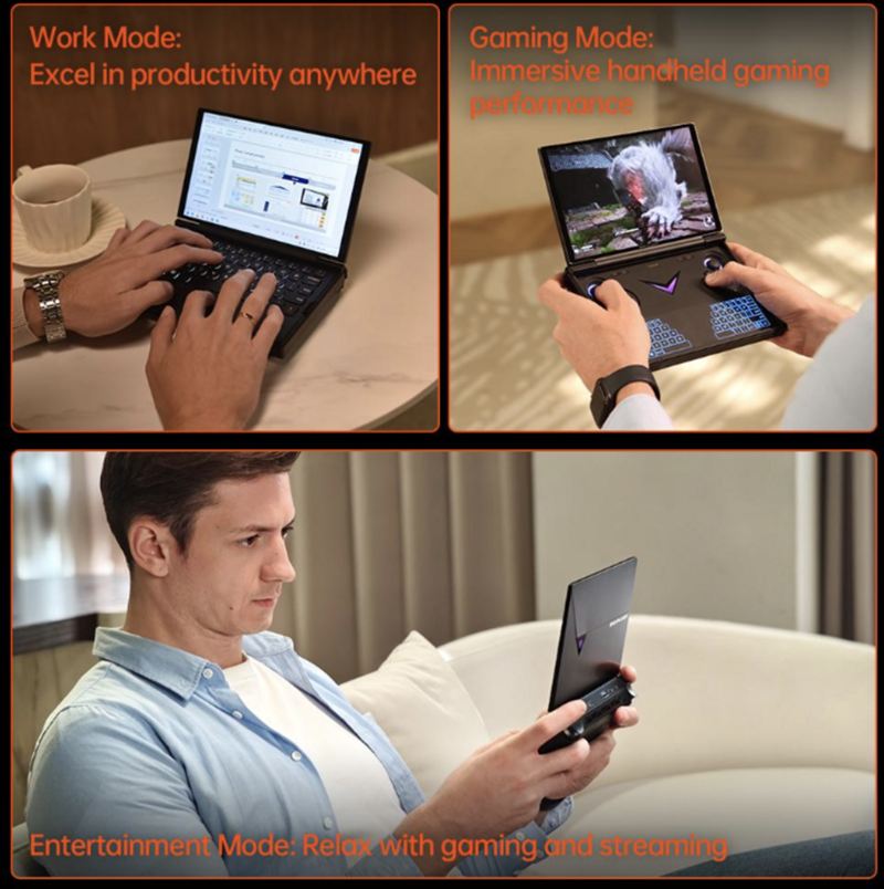 ノートPCモードとゲーミングハンドヘルドモードをシームレスに切り替え、ビジネスシーンでの優れたパフォーマンスを発揮し、自宅ではゲームに没頭できるような製品にすると謳っている。