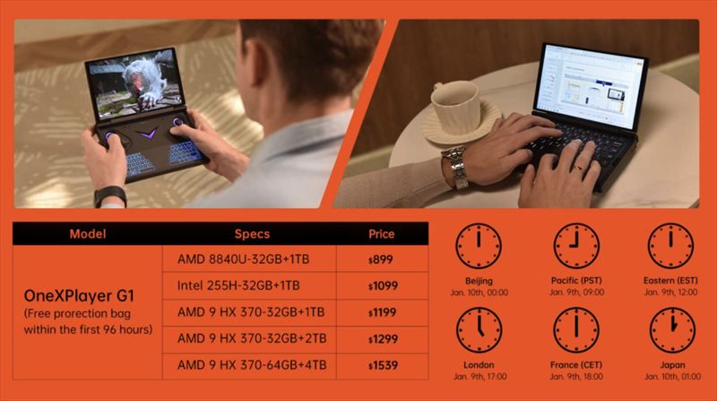 One-Netbook社は本日2025年1月9日9時よりキーボードの取り外しができるゲーミングUMPC「OneXPlayer G1」のクラウドファンディングをIndiegogoにて開始した。