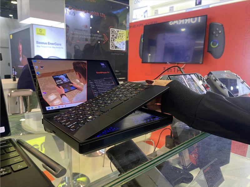 「OneXPlayer G1」はGPD社のGPD WIN Maxのように上部にジョイスティックや十字キー、XYABボタンを搭載。その下にバーチャルキーボードを表示した大型なタッチパッドを備える。
