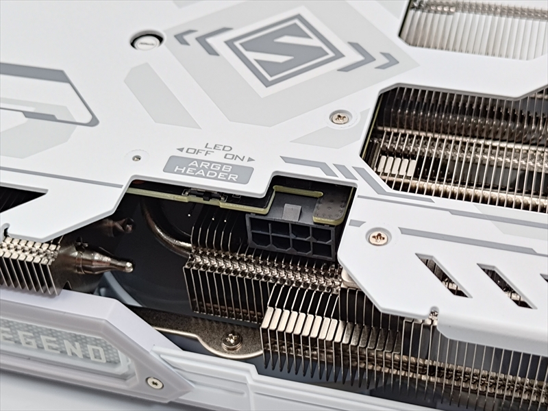 ファンと上部のシリーズ名が記載されたクリア部分にはLEDを搭載。同社のライティング同期技術Polychrome SYNCに対応し、ASRockのマザーボードとも同期させ、彩りを合わせられる。