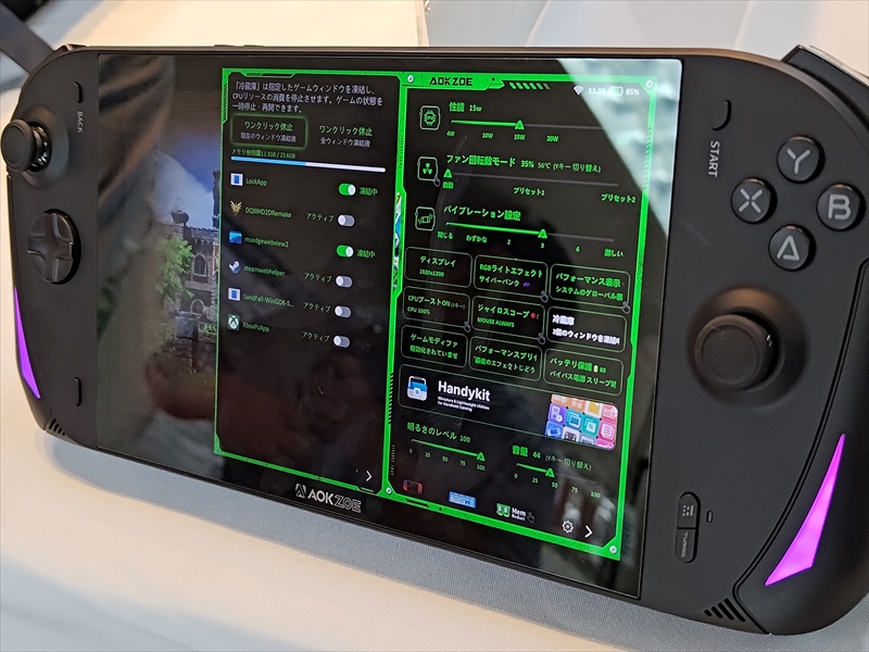 ONEXPLAYERで採用されている管理アプリ「OneXConsole」を備え、パフォーマンスのカスタマイズ、コントローラーなどの調整、ゲームライブラリ機能、クイックアップデートなど、さまざまなことが行なえる。