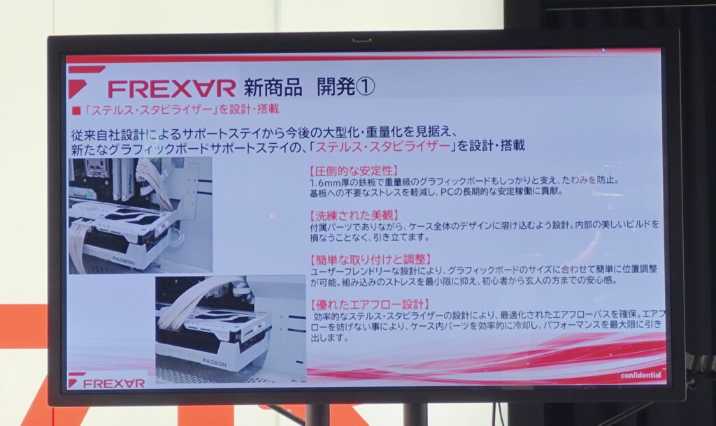 GPUを支えるステイは、下からではなくビデオカードの端にネジ止めで固定し、GPUステイが目立たない「ステルス・スタビライザー」を採用