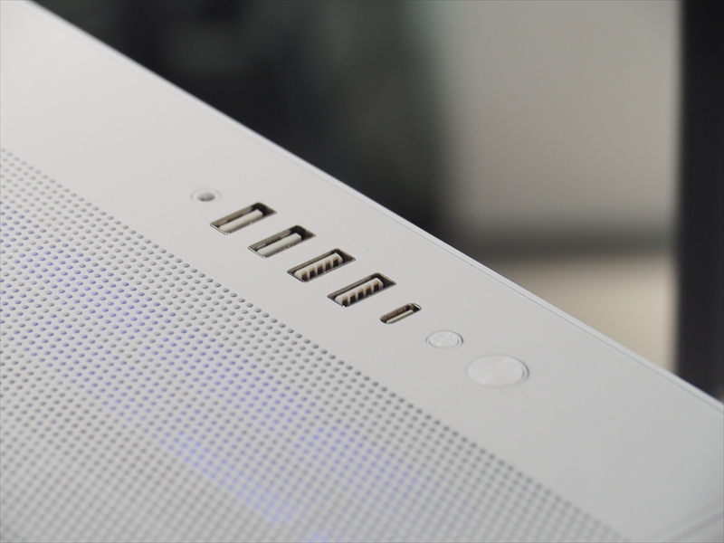 フルタワーのZシリーズのフロントインターフェースは、天面にある。USB Type-Aが4ポート、USB Type-Cが1ポートに3.5mmジャックが備わっていた