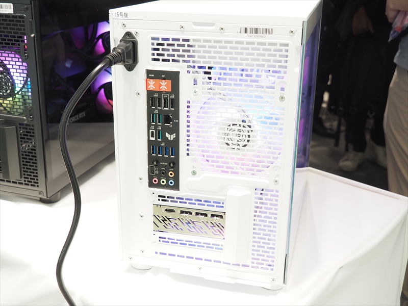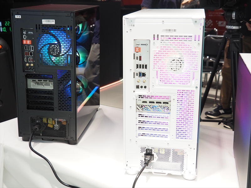 ミニタワーXシリーズのリアインターフェース。会場では電源ケーブルが黒だったが、白カラーのPCは電源ユニットのケーブルも白になるとのこと