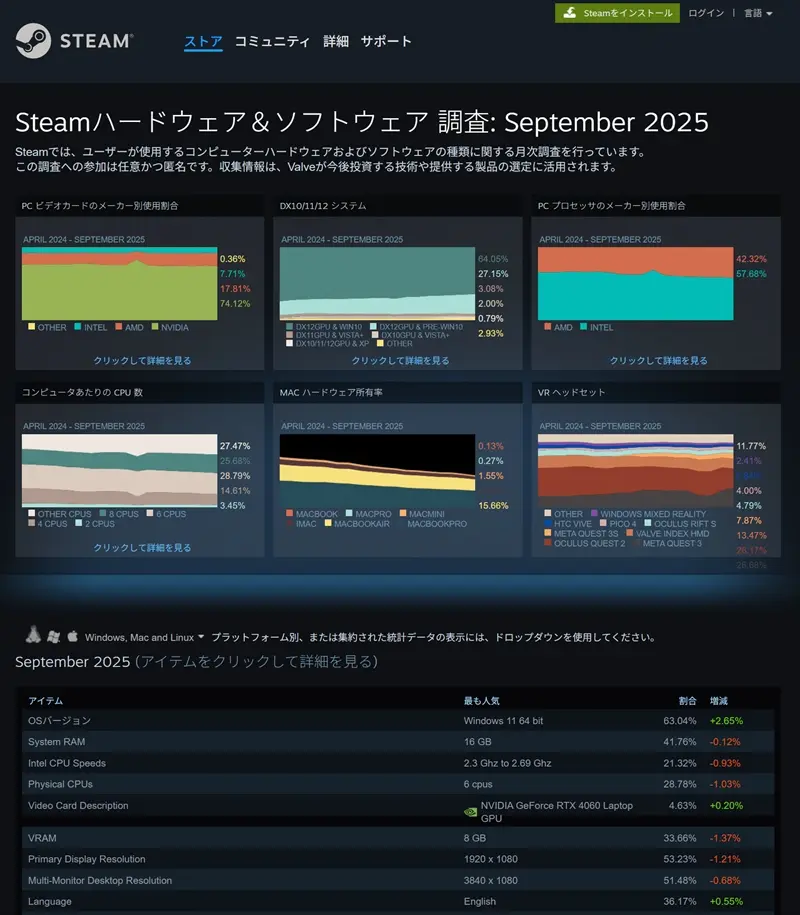参考リンク:https://store.steampowered.com/hwsurvey/