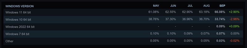 とはいえ、MAYから順に増加率を見てみると、1%前後で動いていた利用者割合がSEPでは急に2.9%も増えている。つまり、先月は「そろそろWindows 11にしないとな」と思って行動した人が多かったのだろう。