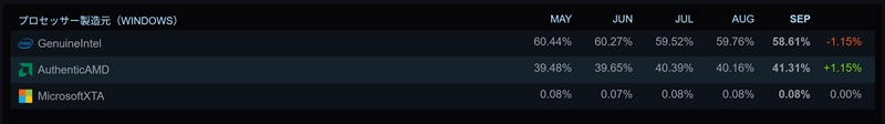 これは、Valveが毎月調査しているデータで、Steam利用者のハードウェアやソフトウェア環境をまとめてくれているもの。現在公開されているのは「September 2025」とあるので、9月末時点でのデータだろうか。