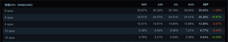 15%は未だに4コアCPUを使用!?みんなのPCゲーム環境がわかる「Steamハードウェア&ソフトウェア調査」が興味深い