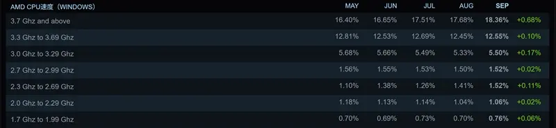 これはIntelと違ってモバイル向けCPUのシェアが少なく、ほとんどがデスクトップ向け、しかもゲーミング性能重視の人が多いという傾向といえそうだ。