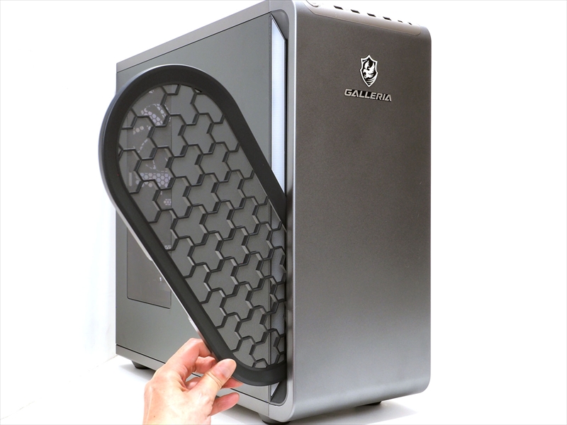 X Seriesは新筐体だが比較的従来のGALLERIA筐体のコンセプトに近い。フラットなフロントパネルを採用しており、いわゆるゲーミングの主張は控えめだ。ゲーマー、クリエイターそれぞれに向けて展開され、ゲーミングモデルはサイドパネルに窓あり(インサイドビューウィンドウ)。