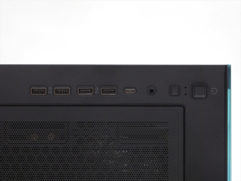 フロントインターフェースはトップパネルの前方寄り右側に並んでいる。机の下に配置する際はアクセスしやすく、机の上に配置すると一度立って抜き差しする格好だ。