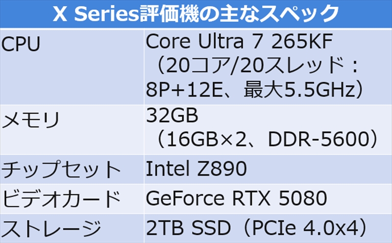 X SeriesもF Seriesも、筐体としてのシリーズなので実際にはそれぞれにいくつかのバリエーションモデルがある。加えてBTOパソコンなので個別にカスタマイズもできる。その点で、今回お借りした2台はあくまで1例だ。しかし、せっかくなのでハードウェア構成を紹介しつつパフォーマンスも見ておこう。