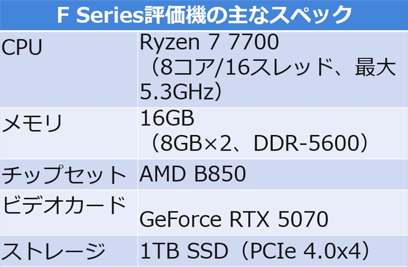 さらに、ゲームをプレイしながら配信したいといった場合、さらなる快適性を求めて「9」グレードに引き上げたり、まずはコストを抑えたいなら「5」グレードに落としたり旧世代の「7」グレードを選ぶといった手法がある。今回のF Series評価機はコストを抑えたい場合の旧世代「7」グレードを選択しているわけだ。