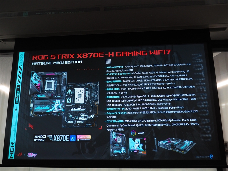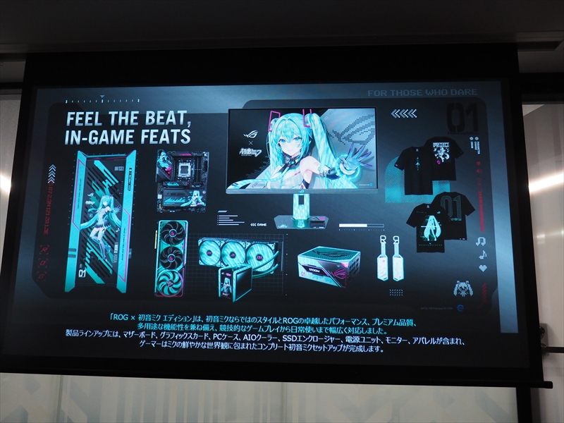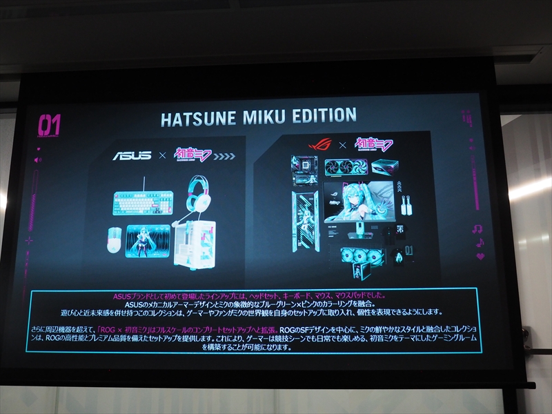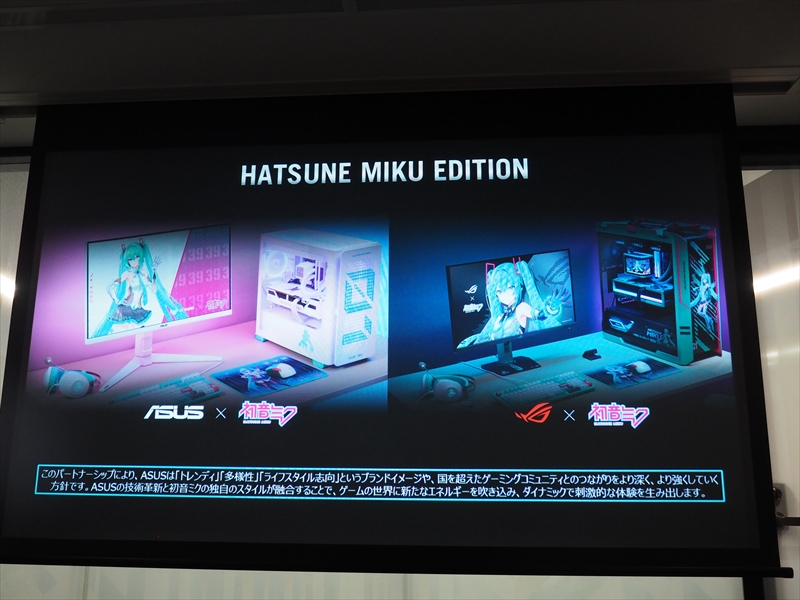 ASUS JAPANは2025年10月8日にメディア内覧会を行い、東京ゲームショウ2025にて展示し、SNSでも話題となったROGと初音ミクのコラボ製品の日本の発売日と価格リリースを2025年10月17日に行うと発表した。ちなみにアパレルは、もう少し後の発売になる予定とのこと。