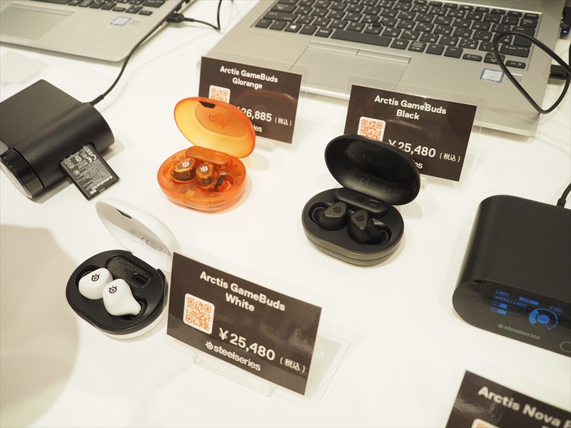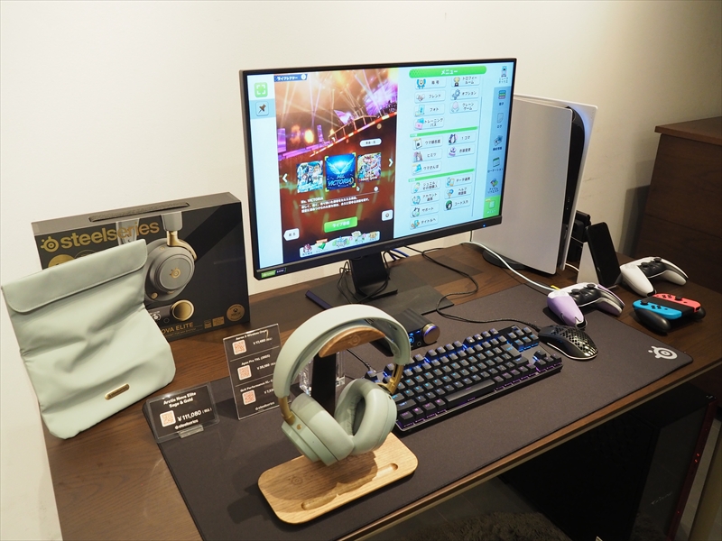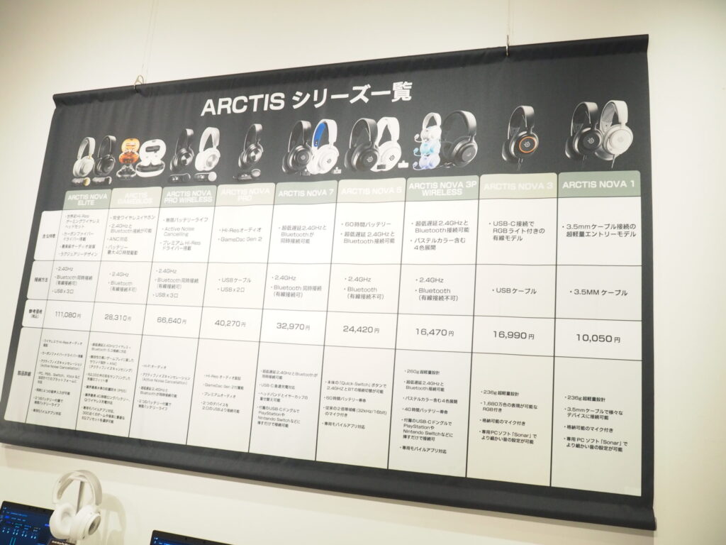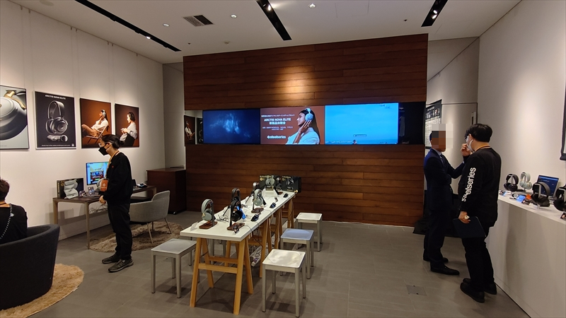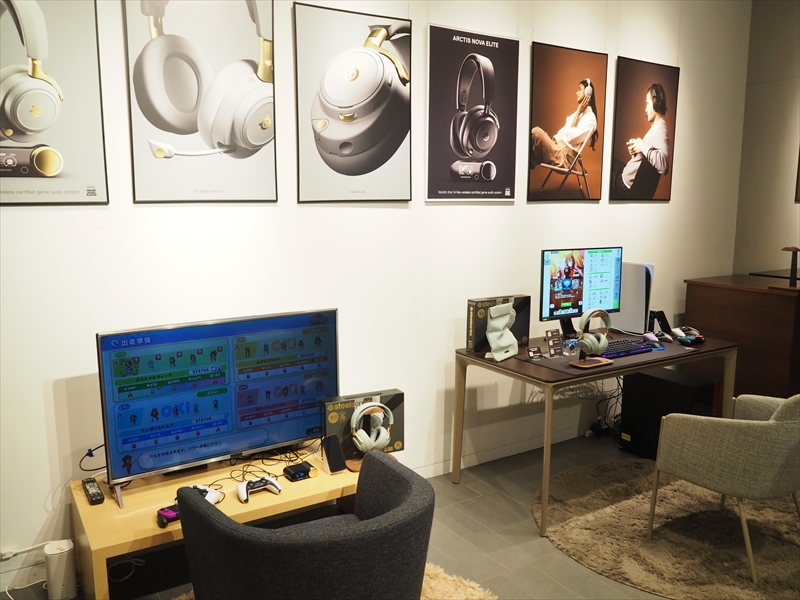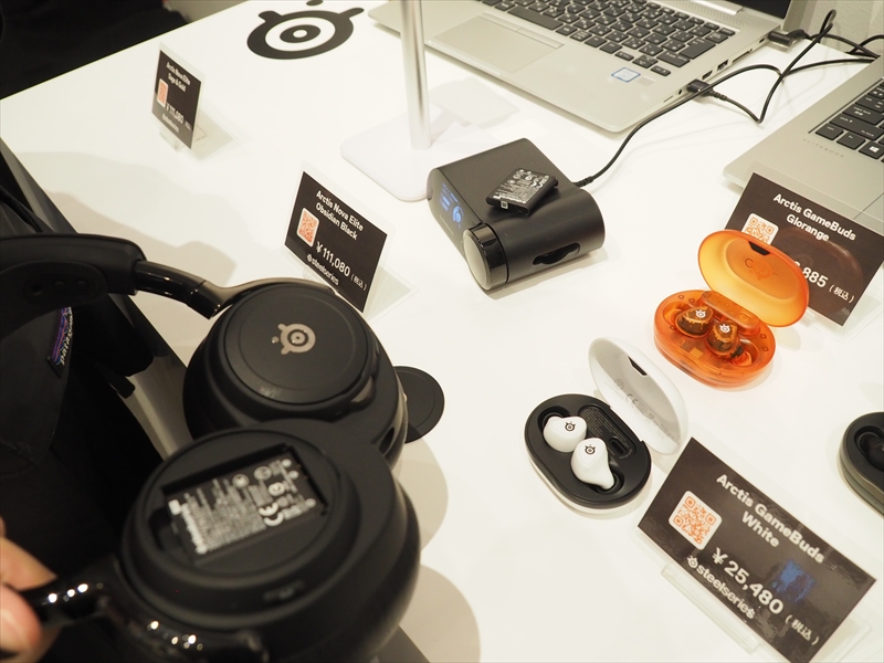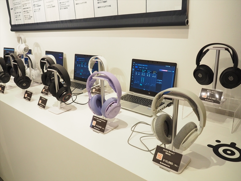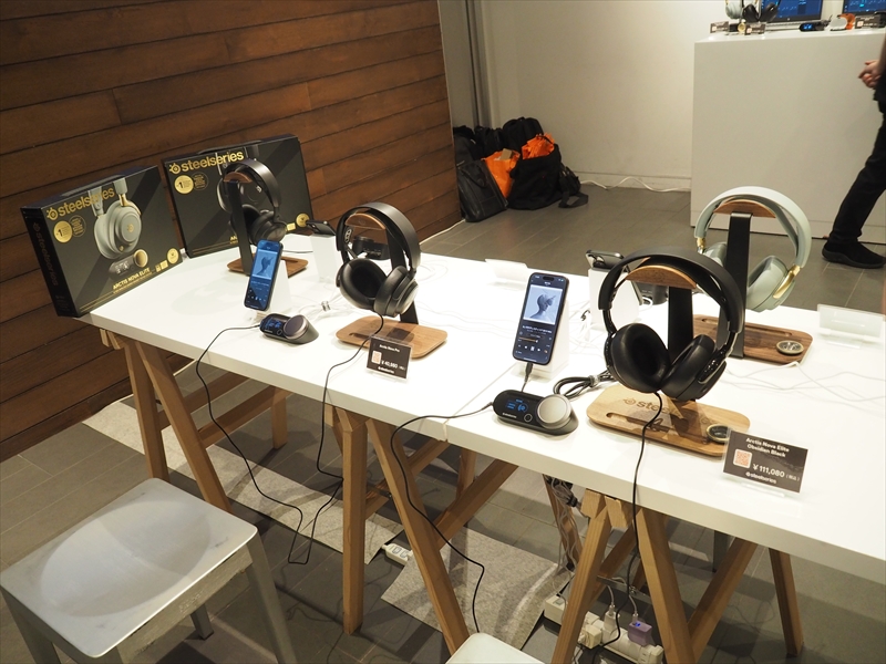 会場中央には、Arctis Nova Eliteが複数音楽再生機に接続されて展示され、自由に音楽を聴くことができた。また、Arctis Nova Proも一緒に展示されていて、聞き比べもできる。