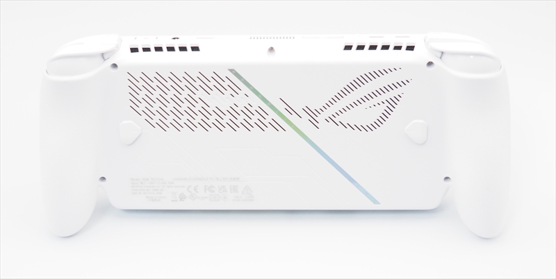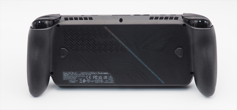 また、本体の背面の左右には、カスタマイズできるm1、m2ボタンを備えるが、初期型のROG Allyよりもボタンのサイズが小型で、内寄りな配置となっている。この形状などはROG Ally Xに似通っていて、中指を意識して伸ばさないと触れられない絶妙な位置にあり、誤動作がし辛くなっている。