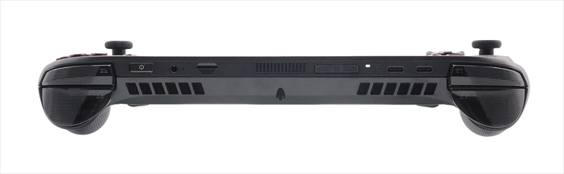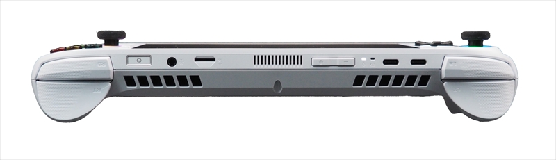 インターフェースはどちらも上部に集約され、底面には何もない。前述したスペック表にも記したが、上部のUSB Type-Cポートがどちらも2つあるが、ROG Xbox AllyがどちらもUSB 3.2 Gen 2(10Gbps)であるのに対して、ROG Xbox Ally Xは外側の1ポートがUSB4(40Gbps)になっている。