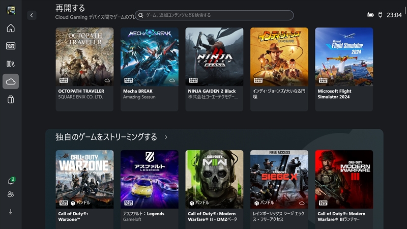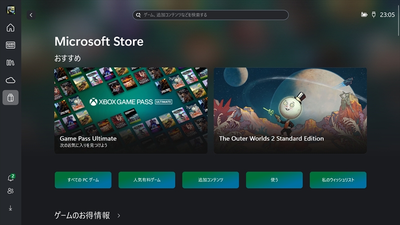 また、インストールしたゲーム、Xbox Game Passに加入していれば、サブスクリプションでプレイできるゲームのほか、Xbox Cloud Gamingでゲームがプレイできるうえ、Microsoft Storeにてゲームの購入もできる。まさに、ゲーム機のXboxでできることが、そのまま行なえるようになっている。