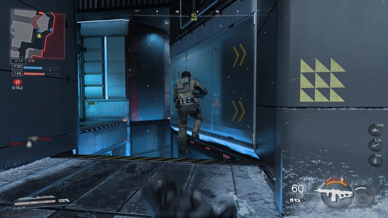 最新作のBO7では、オムニムーブメントの新たな選択肢として「ウォールジャンプ」が追加された。壁を蹴った反動でもう一度ジャンプするというもので、要は「三角とび」ができる。壁を伝って反対側の足場へジャンプしたり、高い場所へ移動したりと、移動の幅が広くなった印象だ。