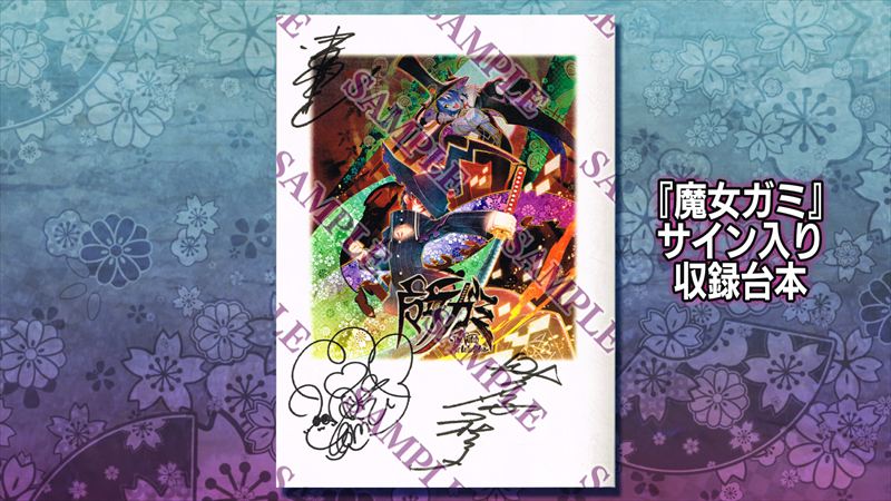 出演声優お三方のサインの入った『魔女ガミ』の収録台本です!
