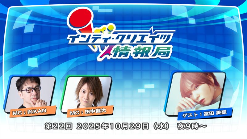 さらに、IKKANさんと田中健大さんのダブルMCでお届けするインティ・クリエイツの最新情報を紹介する番組『インティ・クリエイツ情報局』第22回放送が、2025年10月29日(水)の21時より配信される。