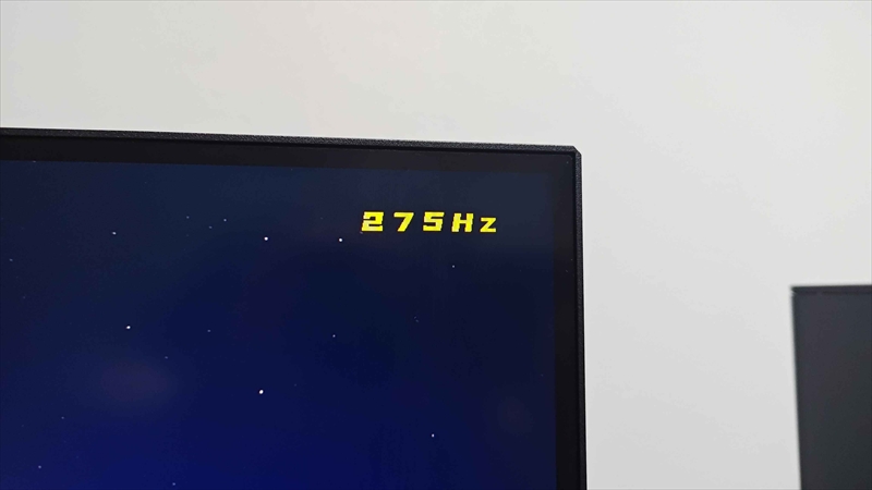 あわせて、275Hz駆動を実現させるにはOSDメニューで「オーバークロック」をオンにしなければならない。オーバークロックがオフの場合、240Hzが上限になるようだ。なので、本機を起動したら必ずOSDメニューを確認するようにしてほしい。
