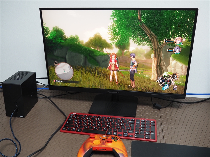 本機でゲームを遊んでみたところ、映像表示の遅延はあまり感じられなかった。操作時の反応も良く、スムーズかつストレスフリーなゲームプレイが可能だった。FPSや格闘ゲームなど、アクション性の高いゲームジャンルとの相性は抜群と言っていいかもしれない。