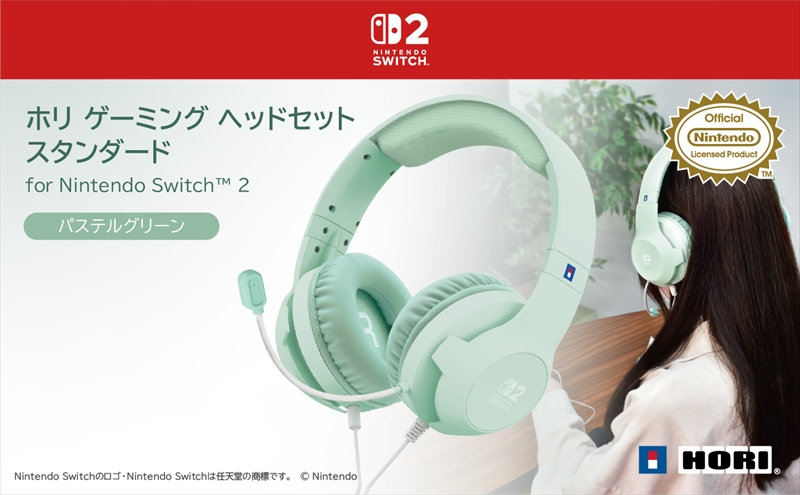 ホリ ゲーミングヘッドセット スタンダード for Nintendo Switch 2 パステルグリーン(NSX-112):https://horistore.com/shop/g/gNSX-112/(ホリストア)