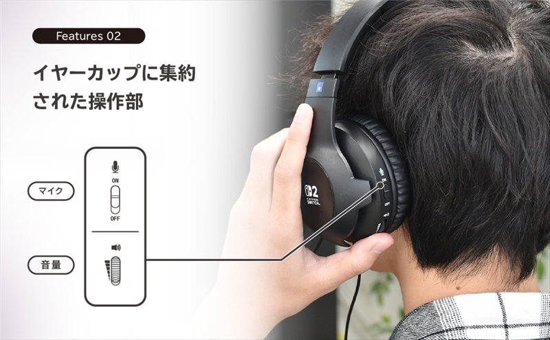 本製品はΦ40mmドライバーを採用し、フラットでクリアな音質かつ細かい音も逃さず聞き取れると謳う。イヤーカップ部分に音量調整と、マイクON/OFF機能を集約。マイクは好きな位置に調整できるフレキシブルアームを採用している。