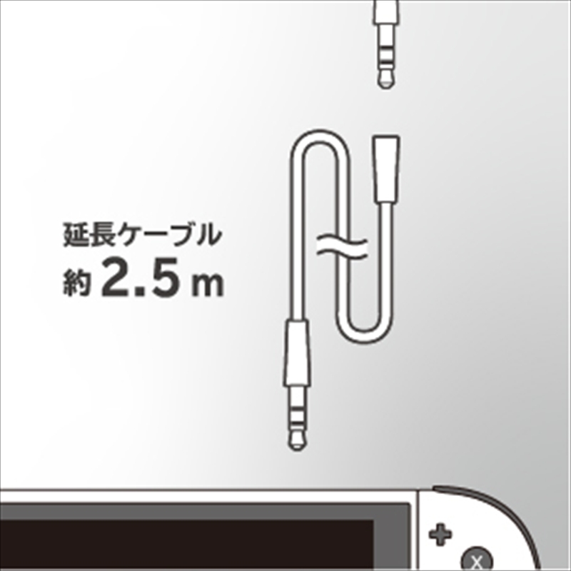 接続は有線で、3.5mmの4極プラグとなっている。2.5mの延長ケーブルを付属し、Nintendo Switch 2をTVモードで遊ぶ際に活用できる。
