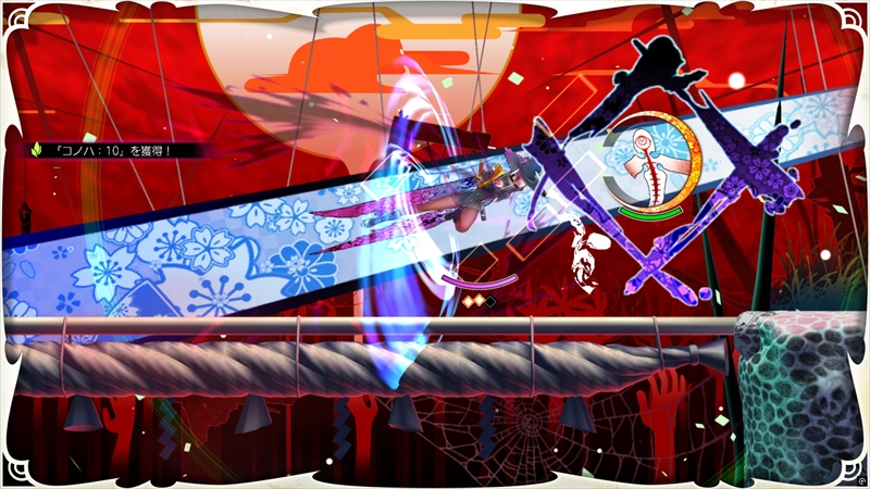 個人的に面白いと感じた点は、「つばぜり合い」の場面だ。時おり発動するボスの特殊攻撃をセツナで受け止めると、つばぜり合いが発生する。