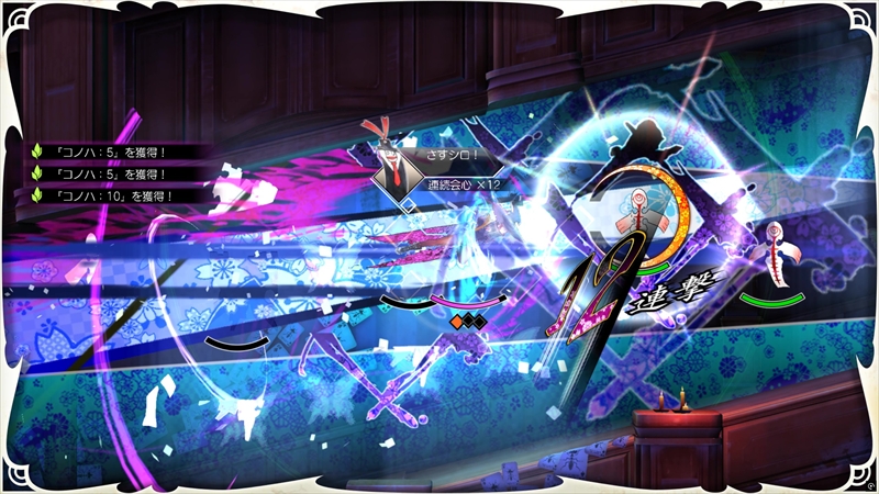 特筆すべきは、強力技というべきセツナ。セツナは、上下左右の筋に素早い一閃攻撃を加え、敵を瞬殺できる技だ(例外もある)。セツナを発動させるには「魔法紙」を消費する必要がある。