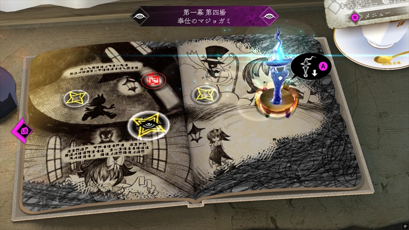 最初はメトロイドヴァニア系ゲームのような探索型だと思っていたが、実際は一本道のステージクリア型となっている。チャプター(幕)のステージ(場)を次々と攻略し、最終ステージでボス(マジョガミ)を倒せば、次のチャプターへ移行する仕組みだ。