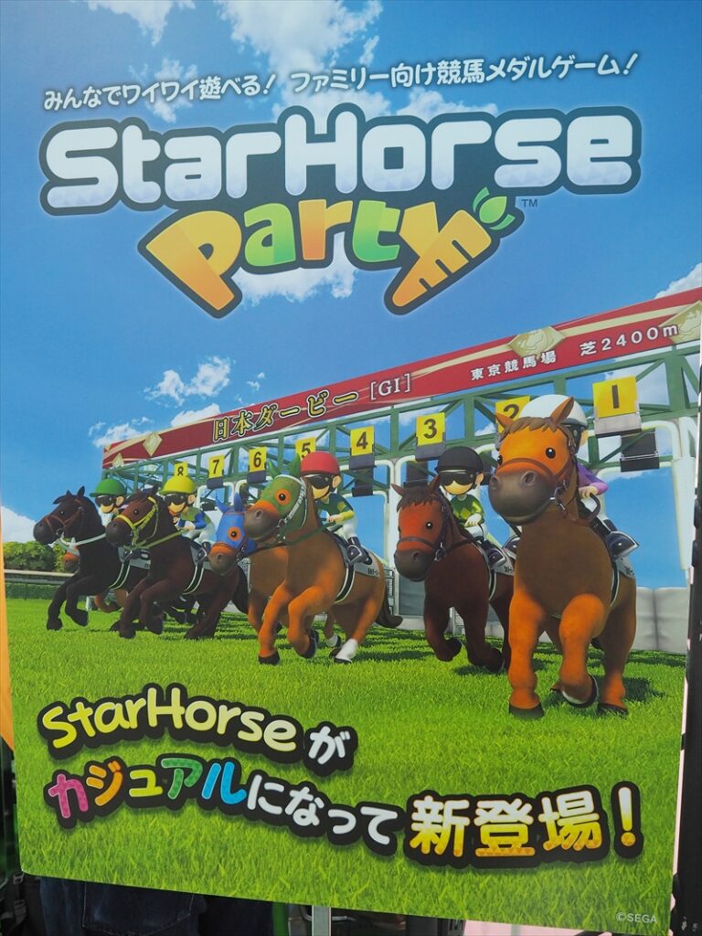 『StarHorseParty』は同社のアーケード競馬メダルゲーム「StarHorse」シリーズをよりカジュアルにしたゲーム。中学生から高校生あたりをターゲットとしているという。「StarHorse」シリーズらしい、レースを予想して馬券にベットできるほか、競走馬をレンタルして育成も可能とのこと。