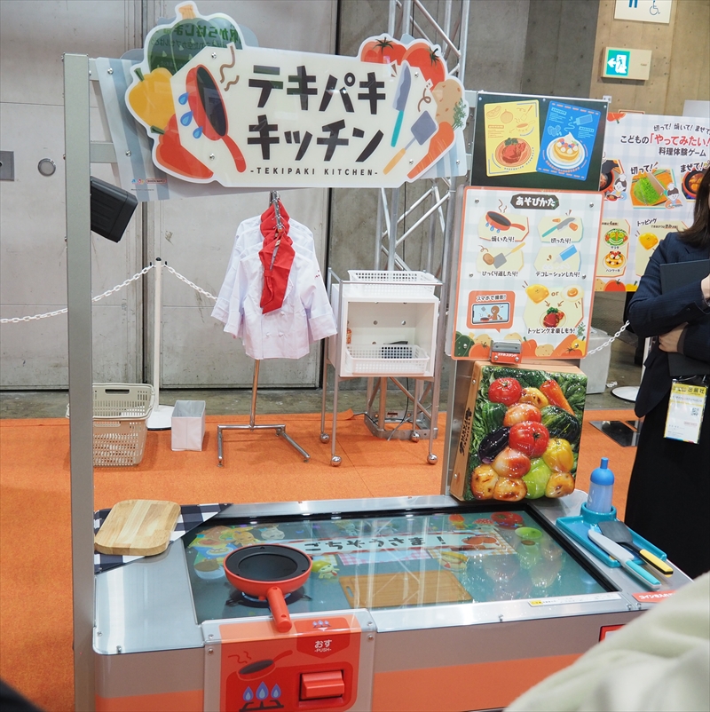 『テキパキキッチン』は、おもちゃの包丁やフライ返しなどの調理器具を使って、実際に料理体験をするキッズ向けゲーム。