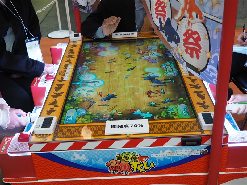 そのほか、開発途中の金魚すくいの体験ゲームや、太鼓の達人のエアホッケーなどの新作も展示。もちろん、クレーンゲームなど、かなり豊富なラインアップが試遊できた。