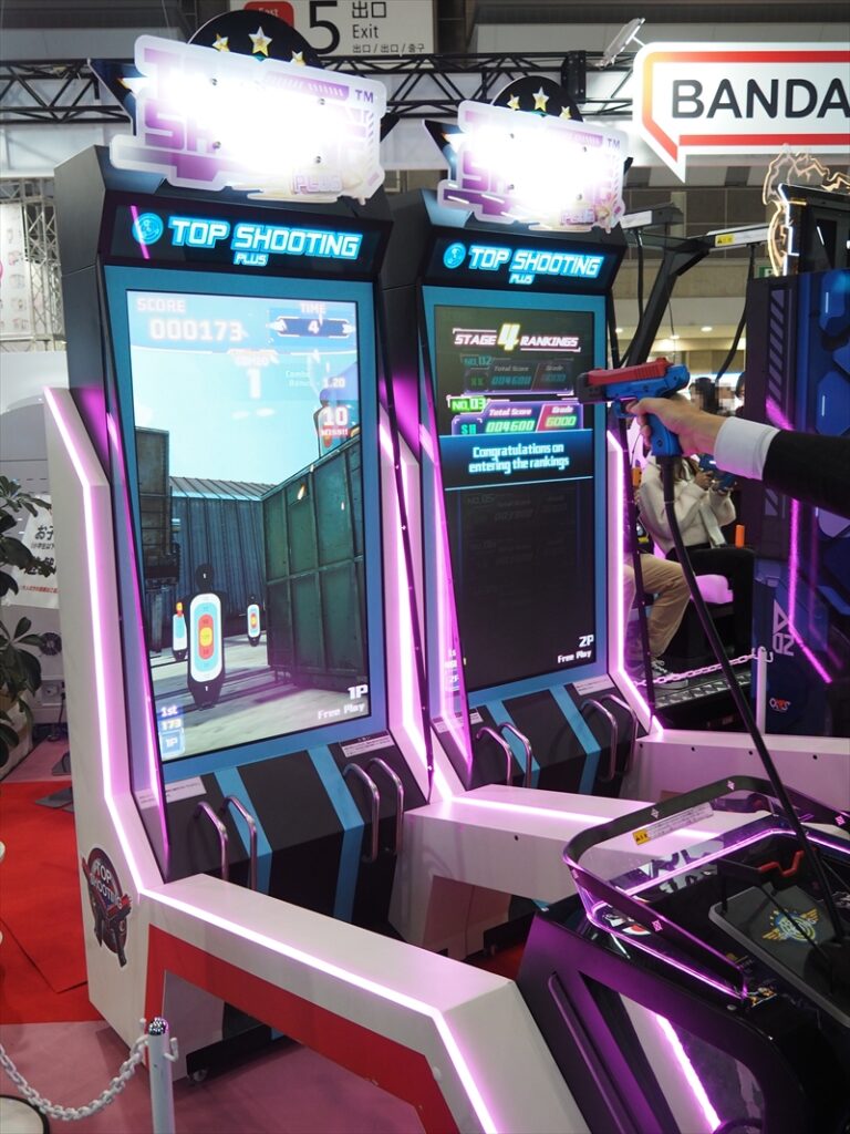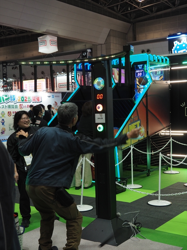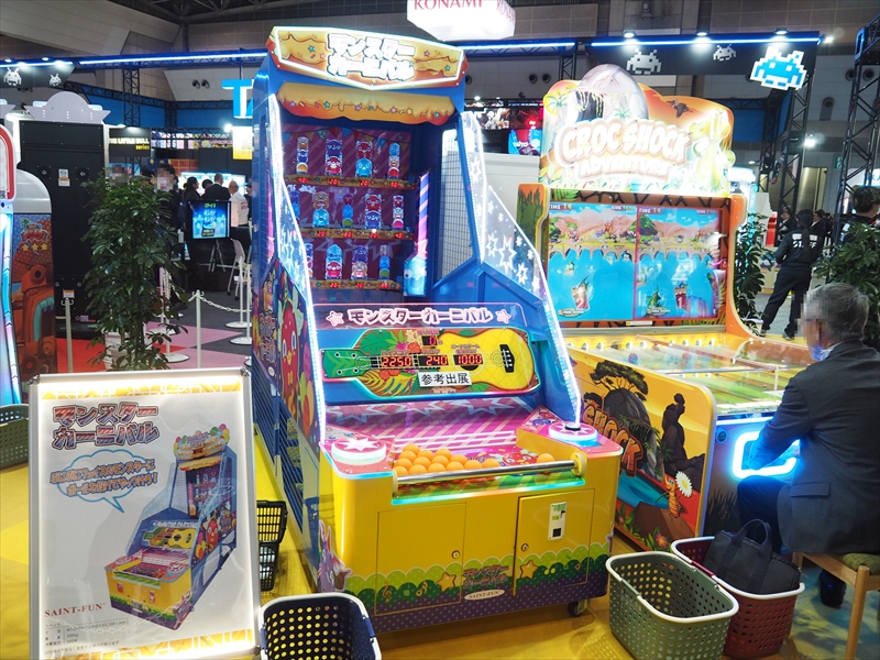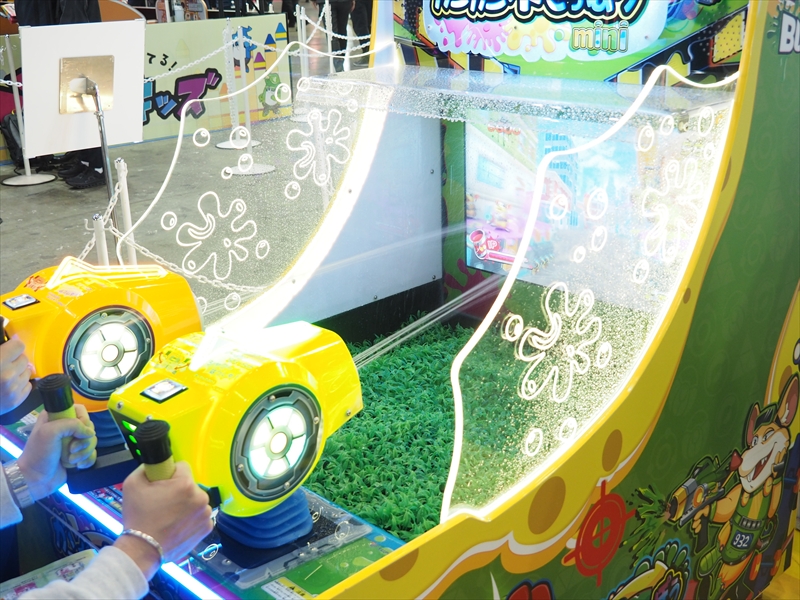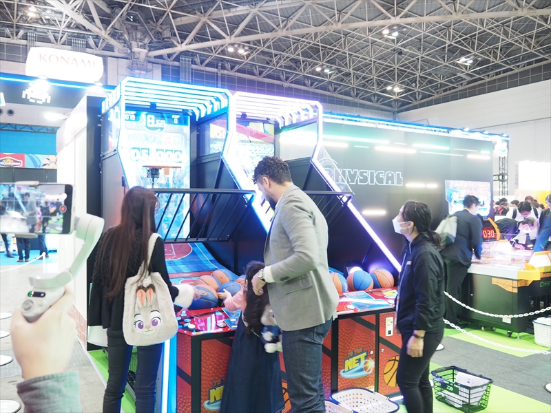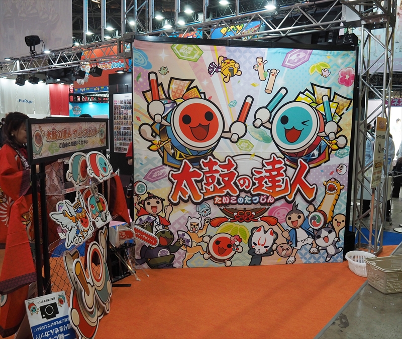新作の金魚すくいゲームや太鼓の達人のエアホッケーゲームなども多数出展