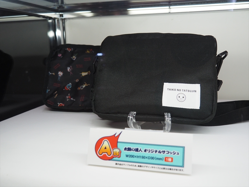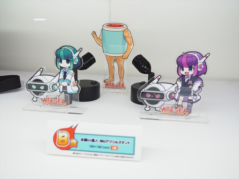 また、ゲームセンターで『太鼓の達人』を遊んでオリジナルグッズが貰えるグッズキャンペーンが2026年初旬に開催される予定とのこと。そのグッズも展示されていた。