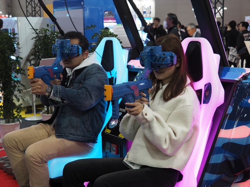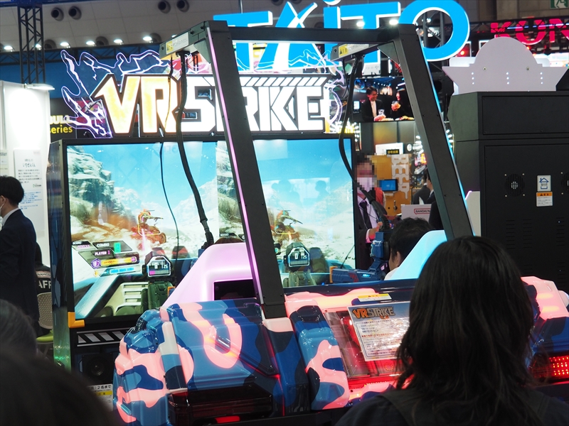 バンダイナムコテクニカのブースでは、反射神経が必要なゲームや、シューティングゲーム、モーションVRに対応したゲームなど、ユニークな筐体が多数出展されていた。