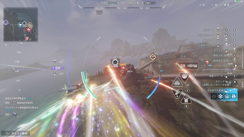 従来の初代『DAEMON X MACHINA』は、ビジュアルがリアル志向ではなくアニメーションチックで、非常に動作が軽かったが、本作はフィールドがオープンワールドになったため、アセットの読み込みに時間がかかるのか、拠点から出る時のロード時間が長かったり、前作よりは重かったりする。
