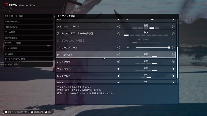 そのため、品質さえ「高」であれば解像度を落としても、それほどビジュアルに影響はないので、WQHD以下で遊んだ方が良さそうだ。