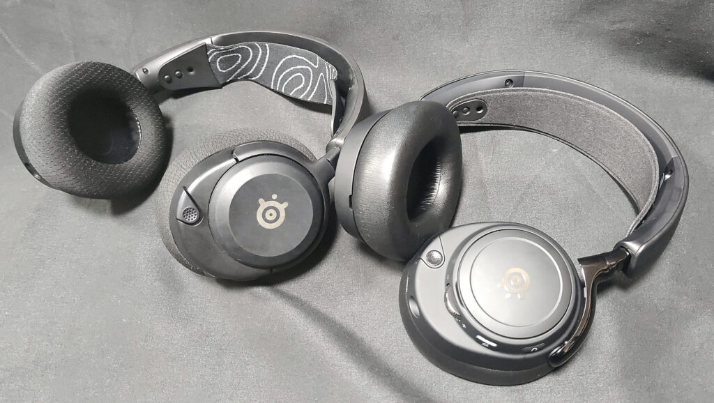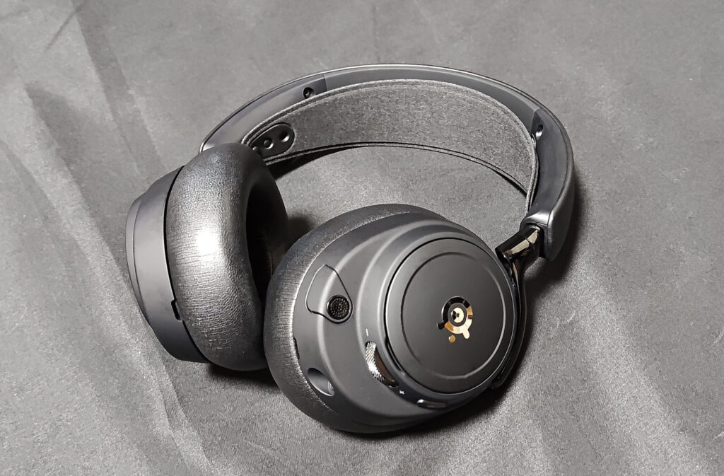 Arctis Nova Eliteのオブシディアンブラックは、ヒンジ部分に金属を使用し、従来のプラスチック製よりも頑強さがあり、光沢による高級感があるデザインとなっている。ヘッドバンド部分は、動物由来ではない合皮のヴィーガンレザーが貼られ、プラスチックのみのエントリーモデルよりも手触りも良く、所有欲をかきたてる。