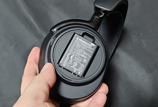 ヘッドセットの右側のハウジング部分には磁石で脱着できるカバーが取り付けられていて、その下にバッテリーがあり、ホットスワップで取り替えられる。もう1つのバッテリーは、GameHubの右側にあるスリットに入れて充電できるようになっている。