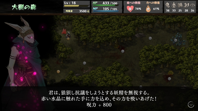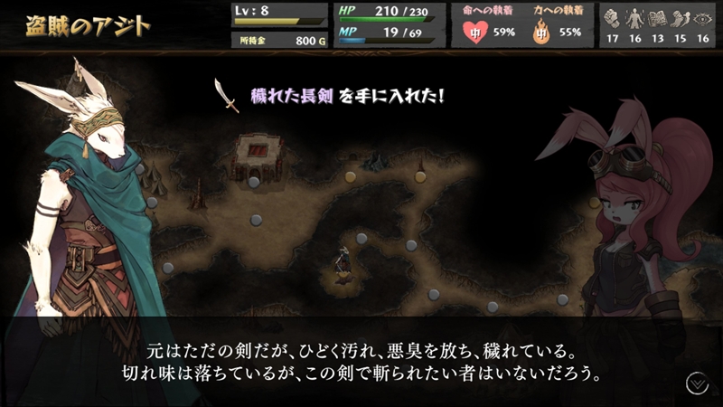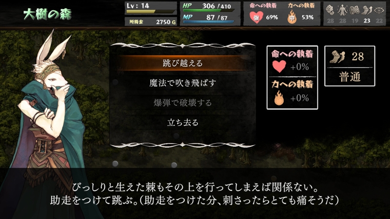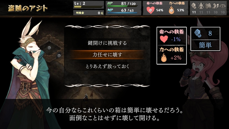 さらに、主人公のステータス状況がダイス判定に影響を与えることも。各ステータスを成長させることで、ダイス判定の難易度が下がる可能性があるのだ。これから本作を始める人に、「ステ振りは大事!」と伝えておきたい。