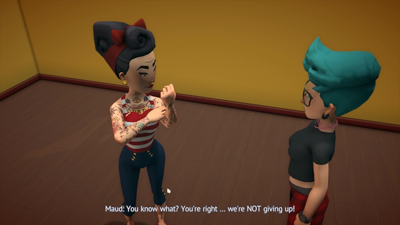 タトゥーアーティストを目指す主人公(右)の提案で、もう一度チャレンジすることに。ちなみにMaudと名乗る女性(左)はお店のオーナー的存在であり、著名なタトゥーアーティストでもあるらしい